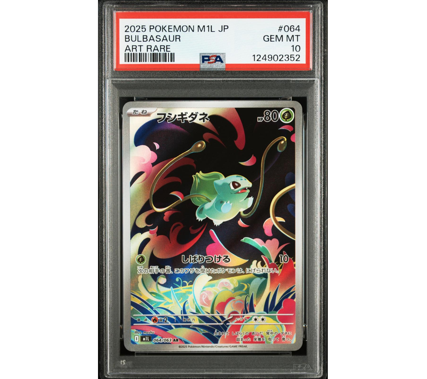 Carta gradeada Mega Brave Bulbasaur #064  PSA10. 2025 Bulbasaur art rare.